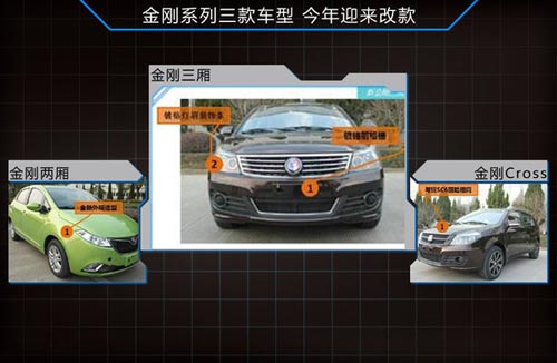 今年,2014款全新英倫SC6改名為新金剛,預計將于3月份上市。楊學良透露,金剛系列三款車型包括金剛三廂、兩廂和金剛CROSS今年也將推出全新改款車型。2014款SC6前臉相比現款金剛,造型更加成熟,由于SC6是在現款的基礎上開發的,還有些現款車型的影子。動力方面,目前沒有具體信息,不過1.5L自然吸氣發動機加五速手動變速箱將是基本搭配。