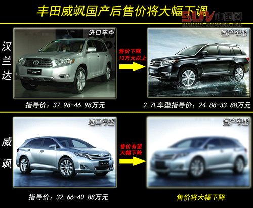 目前威颯在華僅引進了2.7L一種排量的車型,售價為32.66-40.88萬元,而正如2007年漢蘭達以進口方式首次引入國內的情況近似,當時進口版漢蘭達也僅引進了2.7L車型,并且官方指導價高達37.98-46.98萬元,但其在實現國產后,同排量車型的售價則為24.88-33.88萬元,較進口車型相比價格下調了13萬元,因此未來威颯實現國產后,售價也有望大幅度下降。