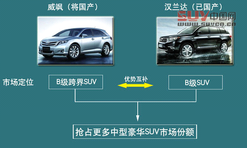 根據廣汽豐田此前所公布的發展規劃,到2015年該品牌旗下國產車型將增加至7-9款,國產威颯則有望“身處其中”,而定位于跨界SUV市場的威颯則與漢蘭達形成了差異化,為廣汽豐田在SUV市場中爭取更多份額。