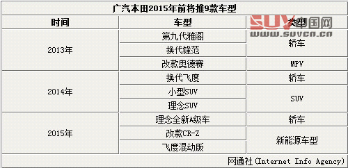2012年廣汽本田全年銷量為31.6萬輛,同比下滑13%,針對銷量下滑的問題,廣汽本田將引入多達9款新車型以提振銷量,其中包括九代雅閣、換代飛度等。與此同時,網通社了解到,即將引入的多款新車型在動力上將有望普及本田最新研發的直噴引擎與CVT變速器。在多款車型引入后,廣汽本田也把2015年的銷量目標定為了72萬輛。