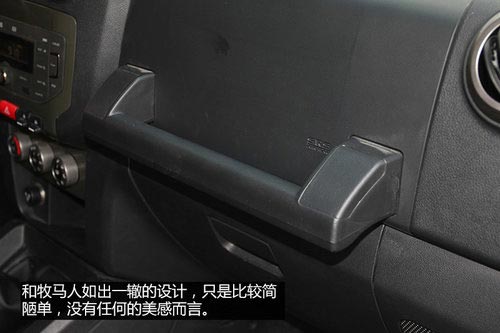 在一些娛樂配置上還算豐富,但是針對現(xiàn)在比較流行的2.0USB接口在BJ40上并沒有配備,依舊是采用1.0USB借口,很落后的設計,希望改進。很多的地方還是與牧馬人非常像,像不怕,至少能做的好看一些,比如手套箱上方的手扶支架,集合就是牧馬人的翻版,但是造型設計上并沒有美感而言。