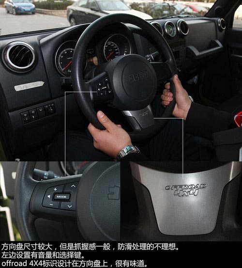 內(nèi)飾的設計基本上就告別了居家風格,中控臺部分設計圓中帶方,基本上就與女性車主告別了,我的意思就是高大威猛點的男士更適合來駕馭它。方向盤比較大,抓握感一般,對于出汗時候手容易打滑的處理不是很好,建議在增加摩擦力方面做一些改進。