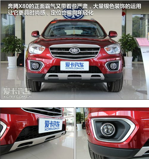 第一眼看到奔騰X80,讓人想到的第一個詞是“霸氣”和“嚴肅”。奔騰X80的進氣格柵設(shè)計十分應(yīng)景,雙鍍鉻飾條簡約大方,頂部寬大的鍍鉻邊在中間位置微微凸起,與一汽車標融為一體,十分協(xié)調(diào)。