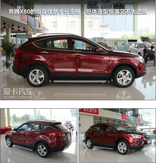 奔騰X80車高度保留了概念車上鎖呈現(xiàn)的設(shè)計元素,雖去除了一些概念化的造型特征,但家族味道甚濃的中網(wǎng)、異型大燈以及凹凸有致的側(cè)身線條依然顯得動感十分。車身尺寸為4586/1820/1695mm,其軸距為2675mm,整體尺寸與豐田RAV4差距不大。