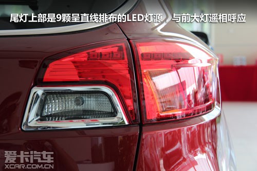 犀利的前大燈造型別具一格--“L”形LED日間行車燈如同磚石般鑲嵌在了車燈眉眼處,同時和“一”字形LED位置燈相結(jié)合的前大燈設(shè)計結(jié)構(gòu)新穎、未來感和科技感十足。后尾燈總成采用了九顆直線排布的LED后位燈,外形效果與前大燈遙相呼應(yīng),鍍鉻裝飾框及煙熏的面罩,給整個紅色的尾燈區(qū)域增加了深度感和層次感。