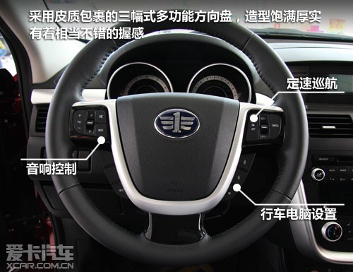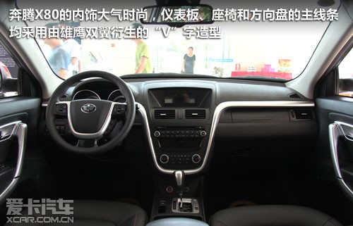 在內(nèi)飾方面來看,奔騰X80則搖身一變從硬漢變成了一個居家好男人——車內(nèi)的功能按鍵種類齊全,令人眼花繚亂。車內(nèi)功能按鍵不大,而且布置比較密集,初次使用者使用起來可能有一定困難。但盡管如此,奔騰X80內(nèi)飾的科技感也是毫不遜色的——整車內(nèi)飾儀表板、座椅和方向盤的主線條均采用由雄鷹雙翼衍生的“V”字造型,將科技感和雕塑感巧妙融合。雙炮筒式的儀表盤設(shè)計大膽,再次強調(diào)了奔騰X80的運動氣息。中控面板區(qū)域線條簡約、圓潤,配合紅色的背光,美觀大方,U型的鍍鉻條貫穿整個面板,猶如一條生命線,充滿生機!