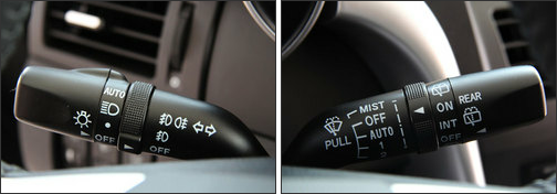 方向盤設(shè)有眾多的功能按鍵,而且握感比較厚實。左手邊按鈕分別為儀表盤亮度調(diào)節(jié),大燈高度調(diào)節(jié)以及車身穩(wěn)定系統(tǒng)開關(guān),高配車型還加入了帶隨動轉(zhuǎn)向功能的大燈,這在同級別車型中著實少見。