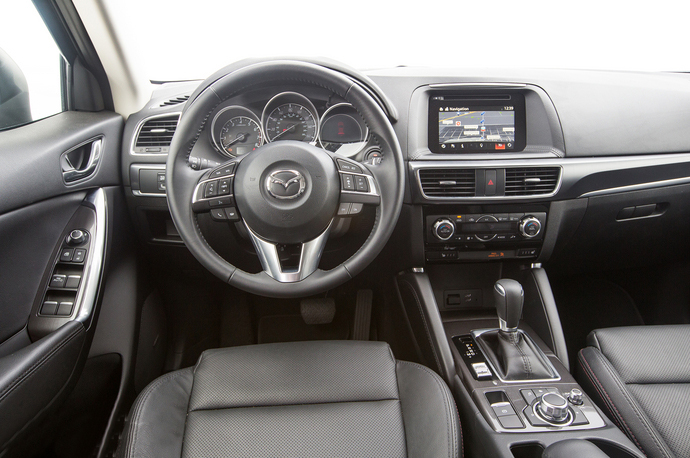在豐田失分的地方,馬自達表現的非常不錯,這款CX-5有著質感和手感都非常不錯的真皮裝飾,并且座椅的舒適性也值得肯定,設計師也準備了足夠的儲物空間,水杯和手機都有了容身之地。雖然馬自達并不是空間最小的車型,但是高挑的車身腰線卻使得車內空間看起來很局促,全黑的內飾除了更顯運動之外并沒有在視覺方面帶來正面影響。