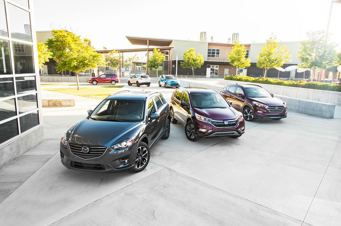 在這9款車中,現代新途勝Limited 1.6T AWD車型算得上是比較新的車型了,這款車型的前任車型(國內的ix35)在同級別中表現中庸。不過這款在去年推出的全新途勝有著不錯的內飾配置,并且裝備了渦輪增壓發動機和雙離合變速箱,而價格只需35,000美元,“戰斗力”增長了不少。相比之下,馬自達CX-5應該是消費者非常熟悉的車型,這款車型也曾經我們上次進行的對比測試中獲得了勝利,今年參加評測的是Grand Touring AWD型號。