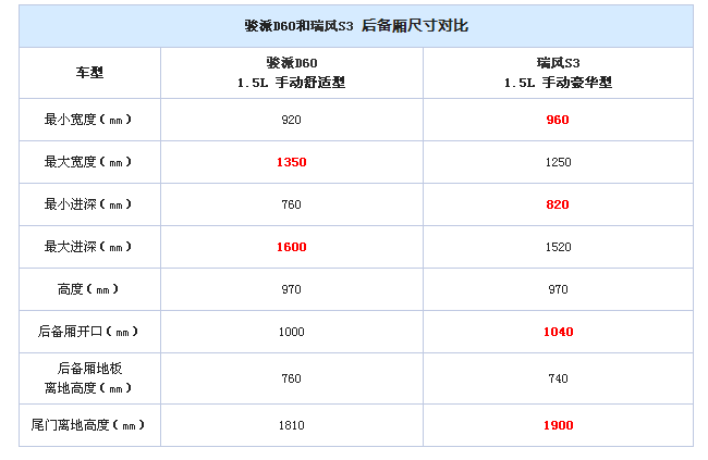 ● 后備廂對比:駿派D60有優(yōu)勢。