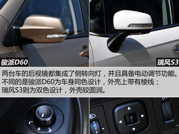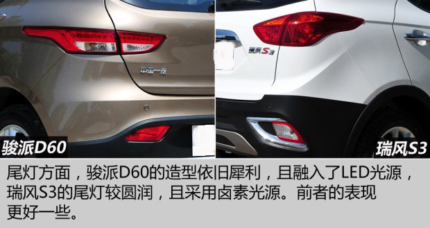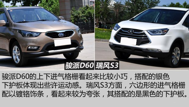 ● 外觀對比:駿派D60比較圓潤,瑞風(fēng)S3棱角凌厲。