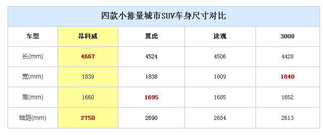 車身尺寸方面,這次推薦的四款車型都比較平均,除了昂科威之外,這三款緊湊型城市SUV相互之間的差別不算太大。不過翼虎的車內空間也有不錯的表現,乘員的舒適性和需要時的載物量都有保證。