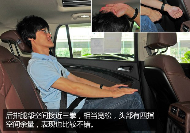 昂科威后排具有獨立出風口,后排座椅也可以前后調節,前后調節距離175mm,能夠充分利用車內空間。在后排座椅移動到最后時,腿部有近3拳的空間,表現不錯。
