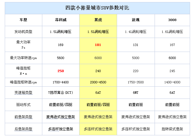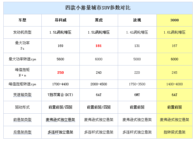 前面我們一口氣給大家介紹了四款配備小排量渦輪增壓發動機的城市SUV車型,下面我就來總結一下這四款車各自的特質,讓您有一個更加直觀的綜合考量。首先,昂科威、翼虎、途觀和3008都是城市SUV市場中比較熱門的車型,不過它們各自又有著不同的主攻方向。