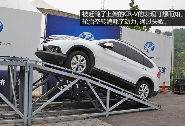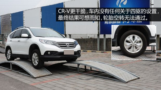 簡單的測試都沒有通過,更難的考試也似乎失去了意義。兩款車都無懸念的失敗了,唯一的區別RAV4尚能自己開上架子,而CR-V干脆需要墊磚才能參與對比,實在讓人大跌眼鏡。這次四驅測試其實沒有贏家,兩個車都用實際行動證明了一點,它們的四驅系統對于實際越野的幫助并不算大,大家還是踏實的在鋪裝路面行駛吧。