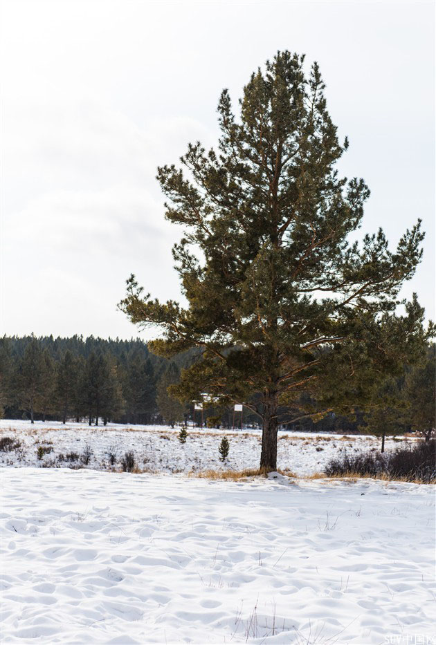 南邊的鄂溫克族自治旗除了吉祥三寶,更多的是森林。紅花爾基森林公園的樟子松原始森林面積亞洲最大,向南直接連通我年前剛剛去過的阿爾山。森林公園新千年剛剛成立,最佳賞景時間是五月底,漫山遍野的杜鵑花與碧藍湖泊獨具特色。寒冬時的森林雖沒春季那么豐富多彩,但寧靜的密林與踩在無人涉足過的深雪時的“咯吱咯吱”聲音顯然另有一番其它情趣——60塊一人的門票錢也省了。