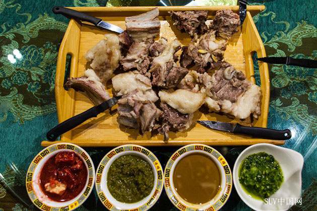 深入內蒙后,青菜在餐桌上的出現幾率進一步降低,每天的牛羊肉讓我們這群漢人叫苦不迭。我們在呼倫貝爾住了三天,吃得每人都發誓回家之后戒羊肉一個月。騎射為生的蒙古人做飯和他們的脾氣一樣彪悍,傳統美食除了涮就是烤,零嘴兒再來點濃郁的奶皮子,幾天新鮮勁兒過了之后就剩膩了……蒙餐雖好,不能貪杯喲。