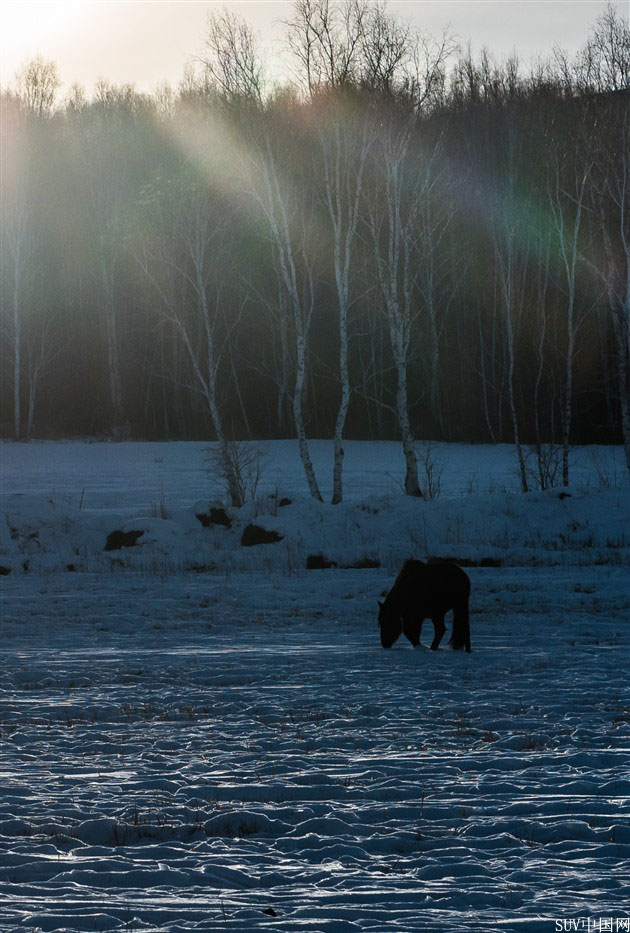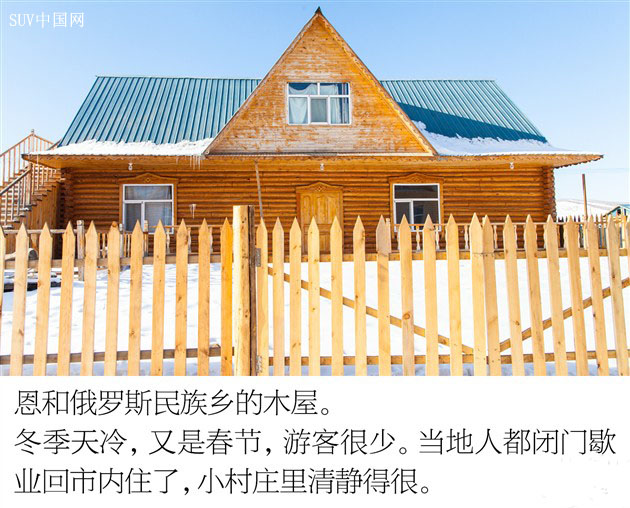 恩和民族鄉主要做旅游接待農家樂。冬天又是春節,幾乎沒有游客,村民們干脆關了門回暖和的市里過節,二百來戶人家只有幾十戶還住在鄉里,極具特點的“說著東北話的藍眼睛二毛子”沒看到,甚是遺憾。