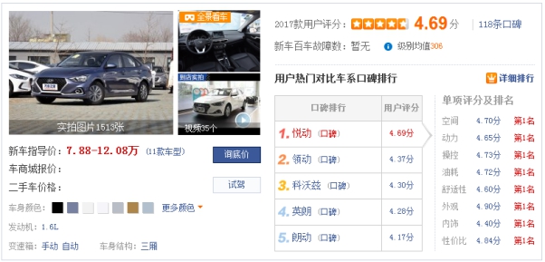 可以說,在這三款車型的對比中,性格的差異讓他們各具特色。但如果你是患有選擇綜合癥,不妨以網友的口碑作為參考。換句話說,在不知道選什么的時候,全新悅動,總不會錯的。