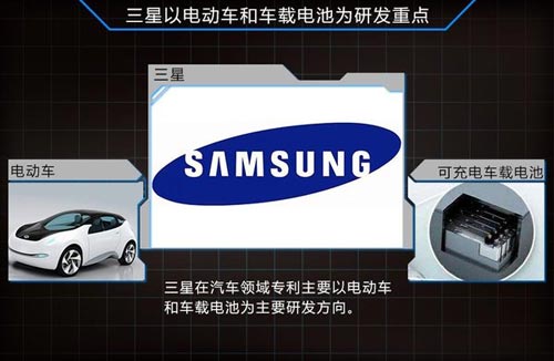 另外韓系科技行業巨頭三星來說,其目前共擁有234項公布專利,并且還有199項專利處于未公布階段。而在已公布的專利項目中,電動車和可充電車載電池是該集團主要研發的項目。可以從中看出三星將未來汽車的發展重點定位在新能源領域,并且其目前已有名為“電動車及其控制方法”和“機動車電池管理系統和方法”等多項技術課題。