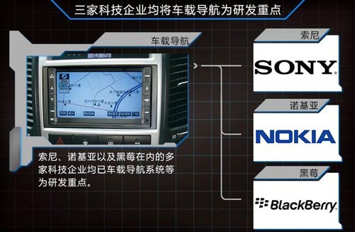 索尼、諾基亞和黑莓等品牌以車載導航為汽車領域主要研發項目