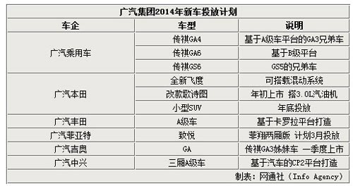 延續(xù)2013年的快速增長勢頭,廣汽本田今年還將推出三款全新車型:新一代飛度、改款歌詩圖、小型SUV,有望幫助公司沖擊50萬輛以上的銷量;廣汽乘用車也在今年開始迎來新車爆發(fā)期:將推出基于B級平臺的GA6,基于A級車平臺的GA3兄弟GA3R(定義的競爭對手為朗行),以及現(xiàn)在熱賣的GS5的兄弟車GS6;廣汽豐田也有一款全新的重量級A級車加盟,廣汽菲亞特致悅將于今年初投產(chǎn);廣汽吉奧GA轎車也將于年初上市,此外,還有剛合資而來的中興汽車,2014年也將有新車投放。