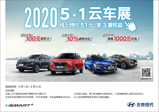考慮到消費者在疫情期間對安全購車的顧慮,北京現代精心打造了一場線上云端車展,消費者足不出戶就能云端逛車展,實現零距離看車的需求。這不僅是一場匯聚多款明星車型的汽車盛宴,也是一次千載難逢的購車好時機。為了回饋消費者對北京現代多年以來的支持與關注,北京現代還為大家準備了數不盡的驚喜。