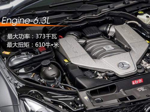 代號為M156的AMG 6.3升V8發動機,自2005年首度亮相以來,至今仍被視為全球性能最為優異的量產八缸自然吸氣式發動機之一。這臺車使用了復合技術的AMG高性能剎車系統前軸采用360 x 36 毫米的復合剎車盤,表現更為突出。