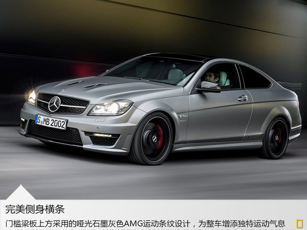 高光黑色 的后備箱蓋上的擾流板、擴散器、水箱和日間行車燈邊框等,配上暗色系的前車燈,以及側門檻梁板上方采用的啞光石墨灰色AMG運動條紋設計,為整車增添了非 常獨特的運動氣息。此外,C 63 AMG Edition 507還新增了designo magno鉑金色外觀,采用了啞光烤漆工藝,非常搶眼。