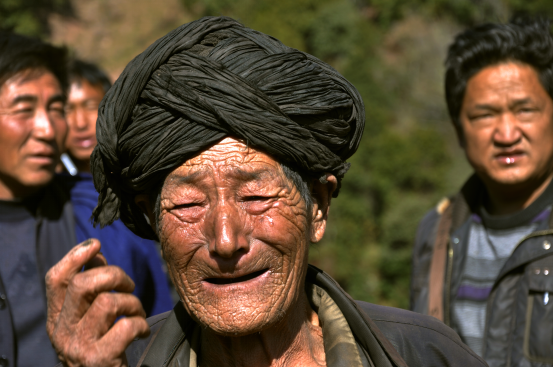 在山路上顛簸了兩個小時,終于來到了瓦子村。剛一下車,我就看到了一位淚流滿面的老人站在村口等待著車隊。