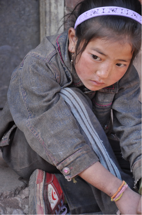 一個小姑娘,靜靜的坐在地上。她是這么的漂亮,清澈的眼睛格外明亮,雙眸仿佛要透露什么,可能是對上學的期望,也可能走出深山的渴望。當我準備用鏡頭捕捉這瞬間,她卻羞澀的低下了頭。