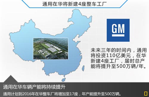 在2013年的上海車展上,通用汽車宣布,從2013年到2016年,通用汽車在產(chǎn)品、工廠、員工三個(gè)領(lǐng)域內(nèi)的在華資本支出總額將達(dá)到約110億美元。瑪麗?博拉還強(qiáng)調(diào),通用汽車還將建設(shè)新的裝配工廠、零部件配送中心,在中國市場進(jìn)一步提升我們的產(chǎn)能,我們?cè)?015年將產(chǎn)能提升30%左右達(dá)到500萬輛,僅2014年就將推出19款全新和改款車型,與大眾相競爭。