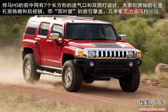 悍馬H3是一輛真正偉大的四驅越野車,33寸的輪圈,適時道路差速裝置,可以讓任何一個SUV愛好者瘋狂。它在保持了悍馬H2粗獷風格的同時,較小的車身更適合城市駕駛,而且在舒適性上也有不小的提高。