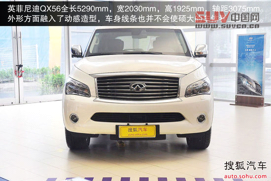 英菲尼迪QX56全長5290mm,寬2030mm,高1925mm,軸距3075mm。外形方面融入了動感造型,車身線條也并不會使碩大的車體看上去更加笨重。