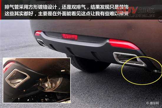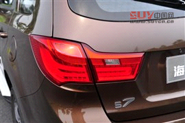 兩款車型的尾部部分還都保留了越野車的一份硬朗,略顯方正的設(shè)計(jì)是區(qū)別于其他城市SUV的一處比較明顯的特點(diǎn),不過兩車的尾燈卻給了我們明顯不同的感覺,海馬S7的燈眉上挑,一幅猙獰的臉孔,而哈弗H6則和藹了不少。海馬S7的鍍鉻雙排氣管看起來真顯檔次,但是你要是趴下來一看,就會(huì)發(fā)現(xiàn)這其實(shí)純粹是裝飾。