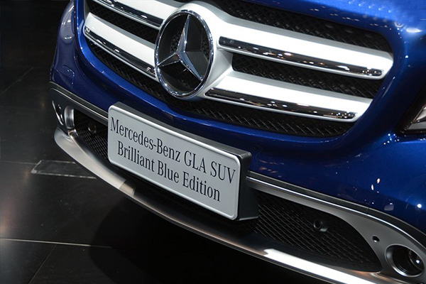 在2016年的成都車展上,北京奔馳帶來了GLA的藍調版車型,相比較普通版本,藍調版GLA(以下簡稱GLA)采用了全藍色的涂裝,擁有更為璀璨的外觀,并且配置上也有所提升,新車將于9月底上市。