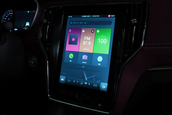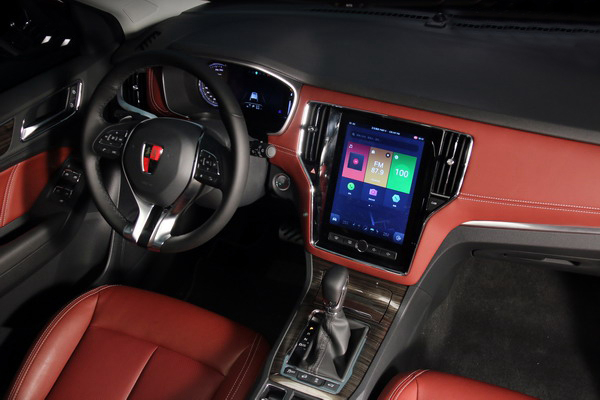 榮威RX5整體內飾采用了明快簡潔的設計風格,中控臺對稱式的設計讓人看上去很舒服。另外,在木紋、鋼琴烤漆和鍍鉻裝飾的點綴下,整個內飾更顯豪華。RX5的中控臺采用了大面積軟性皮革包裹,在同級車型中比較少見,白色雙縫線也提升了內飾質感。