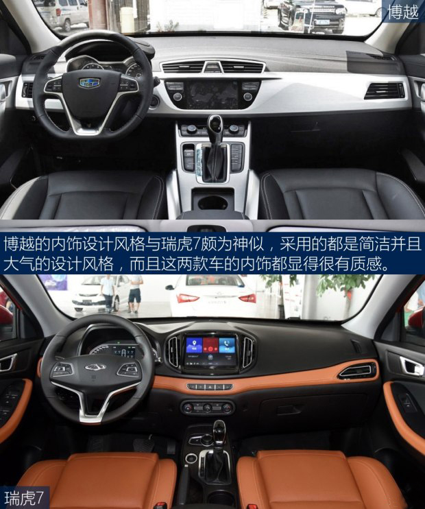博越與瑞虎7的外觀雖然各有特色,但都分別代表了這兩個品牌的家族化設計理念。一個偏向方正剛硬,一個偏向圓潤運動,但都凸顯出了SUV車型所具有的力量感。應該說在設計方面上每個人的審美不同,因此很難評判究竟誰的設計更加優秀。