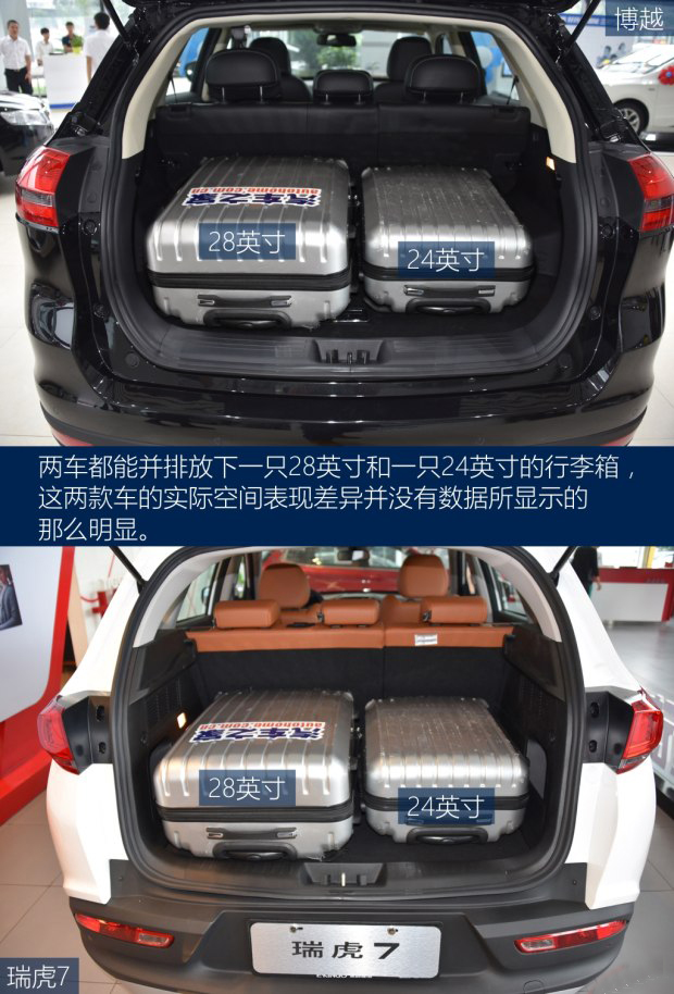 雖然從數據上看,瑞虎7在后備廂深度以及寬度方面用博越相比都沒有優勢,但在實際裝載測試中兩款車的差距并不明顯。而且這兩款車的后排座椅都可以4/6分割放倒,在后備廂空間的利用靈活性方面都有不錯的表現。