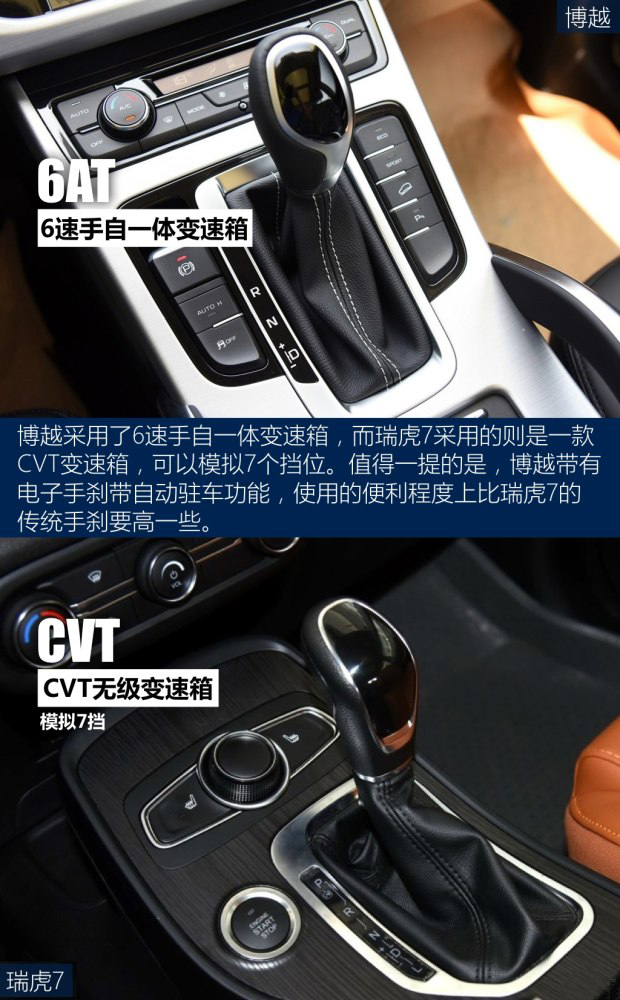 | 車型/項目 | 博越 2016款 1.8TD 自動智尚型 | 瑞虎7 2016款 2.0L CVT耀臻版 |