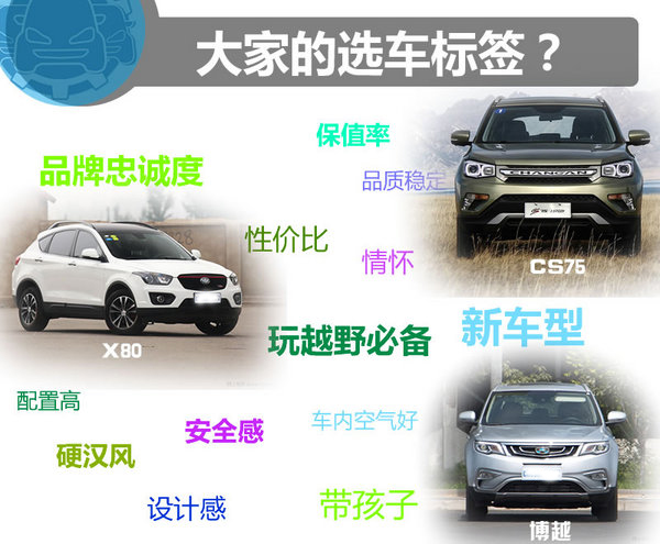 其實(shí)在看過(guò)大家的選車(chē)標(biāo)簽后得出了一個(gè)比較容易理解的內(nèi)容,就是無(wú)論你購(gòu)買(mǎi)的是轎車(chē)亦或SUV,只要目的還是偏向家用車(chē)那么“性價(jià)比”永遠(yuǎn)都是最最關(guān)注的。本次帶給大家的這三款車(chē)SUV車(chē)型的對(duì)比,相信都有了深刻的了解,也都能理解三款車(chē)型的定位。但是我們拋開(kāi)一切外因來(lái)看,長(zhǎng)安CS75絕對(duì)是性價(jià)比最高的車(chē)型;而不在意些許價(jià)格出入且不太關(guān)心配置問(wèn)題的消費(fèi)者,高顏值的奔騰X80也還是真心不錯(cuò)的;吉利博越的售價(jià)實(shí)際與其它兩車(chē)相差不大,并且增加體驗(yàn)、安全性等的配置也絕對(duì)夠豐富。