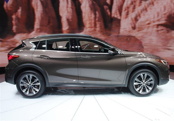 外觀方面全新英菲尼迪QX30延續了概念車的設計,但細節之處的變化使它更賦沖擊力。前臉采用水波紋狀的進氣格柵,在配合上保險杠下方的進氣口,沖擊力十足。大燈的視覺效果給人一種兇狠的感覺。車身側面,新車的線條犀利,雙腰線的設計符合當下潮流水準。