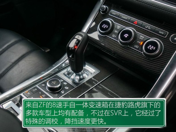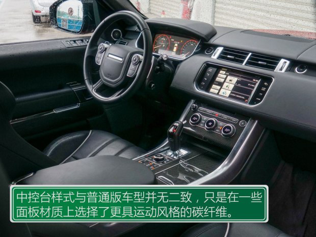 和寶馬一樣,攬勝運動版SVR的內飾也沒有什么標新立異的地方,只是增加了一些碳纖維裝飾板。有時候想一眼從內飾看出SVR的特殊身份還真不是一件容易的事兒。