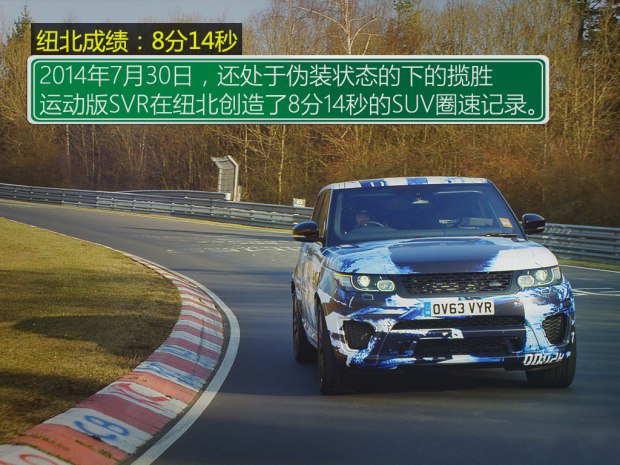上面已經提到過兩款高性能SUV的紐北成績了,其實用SUV刷紐北這個事兒從某種程度來說是路虎挑起來的,2014年7月30日,路虎攬勝運動版SVR用8分14秒的成績打破了當時的紐北SUV圈速度記錄,那么攬勝運動SVR是一款什么樣的車呢?