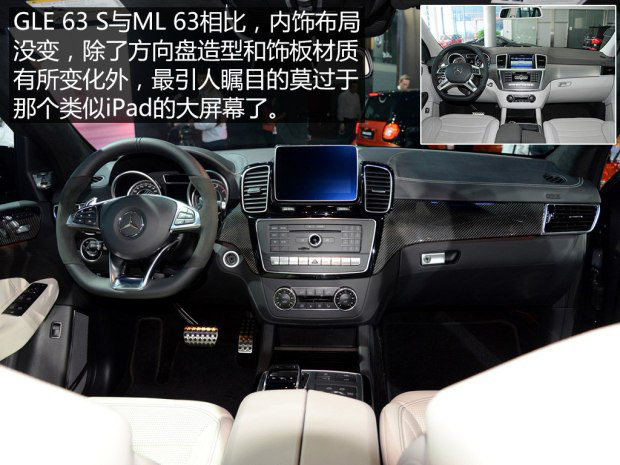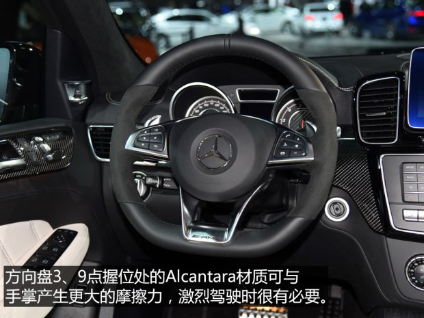 GLE 63 S內飾的變化同樣不太大,Alcantara材質的AMG方向盤是最大亮點。其實通過這幾款高性能SUV我能已經可以看出,內飾并不是它們的重點,動力才是。