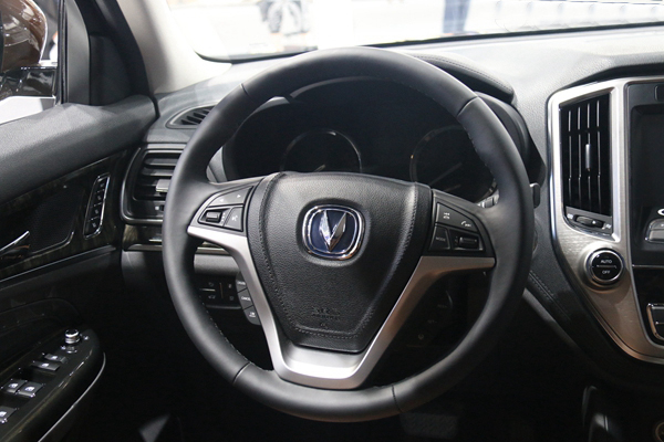 內(nèi)飾方面采用了對稱布局,采用黑色和米黃色為主調(diào)色,并以木紋裝飾件作為點綴,儀表盤正中央的液晶屏可以顯示行車電腦,駕駛模式,四驅(qū)系統(tǒng)等信息。方向盤采用了標準的長安款式,看著比較普通但缺乏新鮮感,好在尺寸大小合適,握感適中,真皮包裹也比較細膩。