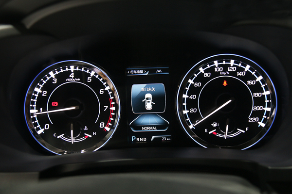 方向盤(pán)方面采用了 三幅式設(shè)計(jì)并且?guī)в卸喙δ馨存I。方向盤(pán)的握感粗壯也十分舒適。儀表盤(pán)方面采用了雙圓設(shè)計(jì),中間小液晶屏集成了非常豐富的信息。