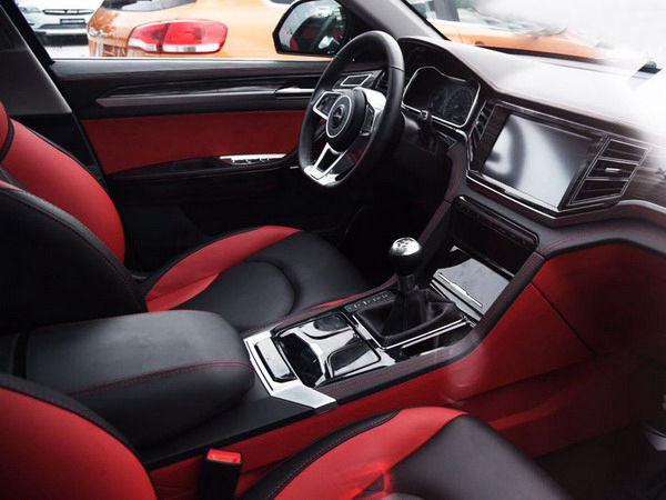 內飾方面,新車采用了紅黑搭配的雙色內飾,并設計有平底式三輻多功能方向盤和大尺寸中控液晶屏。配置方面,可以看到新車配備了一鍵啟動、電子車身穩定系統、全景天窗等。另據廠家介紹,新車未來還有可能提供五座和七座兩個版本。