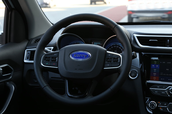 內飾提供全黑和黑棕兩種選擇,整個儀表臺的設計線條參照了“牛角”的元素,材質受限于成本原因為硬塑料,整體做工和設計還是有種廉價感。中控采用8英寸觸摸大屏,可以支持導航、多媒體、手機互聯等功能,但在實際使用中并不是很方便,面子工程大于實用性。