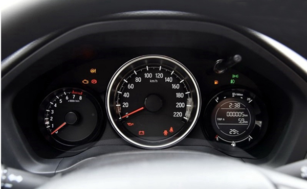 中控的布局會向駕駛員一側傾斜,純黑色的內飾搭配檔位的木制裝飾也不失其豪華感,旋鈕式空調也是當前非常流行的設計。三炮筒式儀表盤雖然常見,但比較特色的是右側炮筒為電子屏幕,顯示功能比較豐富。